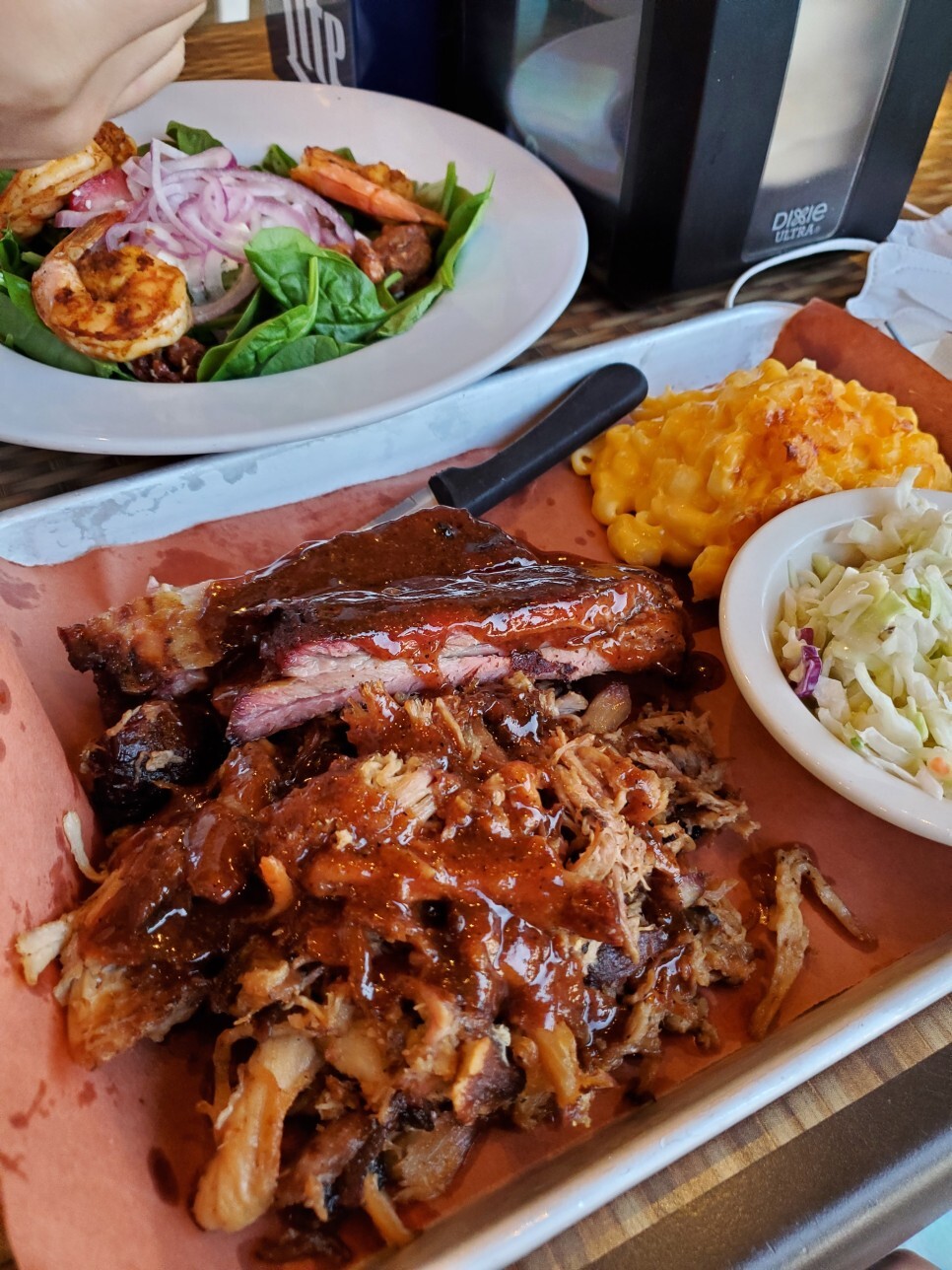 바베큐 존맛...ㅠ 양 엄청 많았는데 배고파서 흡입하다보니 저 많은걸 거의 다 먹었다. 맥앤치즈..코울슬로..바베큐 소스까지 완전 미국맛 (=살찌는 맛)