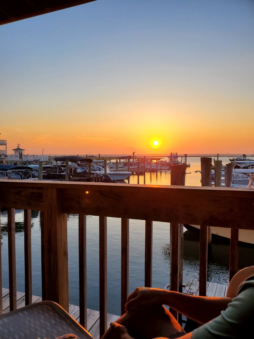 미국은 뭔가 기술 보급이 느려서 진동벨 주는 곳이 많이 없는데 여기는 웨이팅 걸어놓으니 진동벨을 줬다. 한국에서는 옛날부터 진동벨 썼는데 여기서 오랜만에 보니 최첨단같이 느껴진다.. 저녁 먹으러 간 타이밍이 딱 선셋 타이밍이었다. 노을이 로맨틱하게 져서 잠시 넋 놓고 바라봤다.